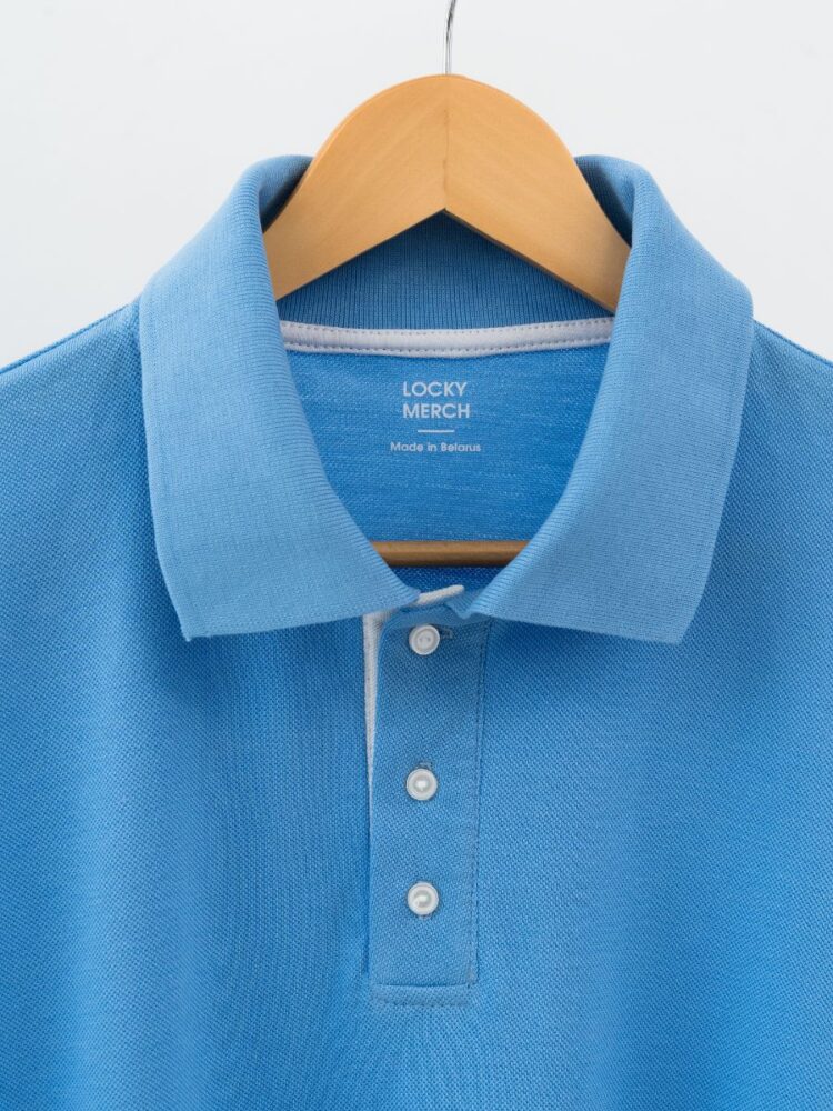 Мужская футболка-поло Locky merch — модель собственного производства с индивидуальным пошивом под клиента.